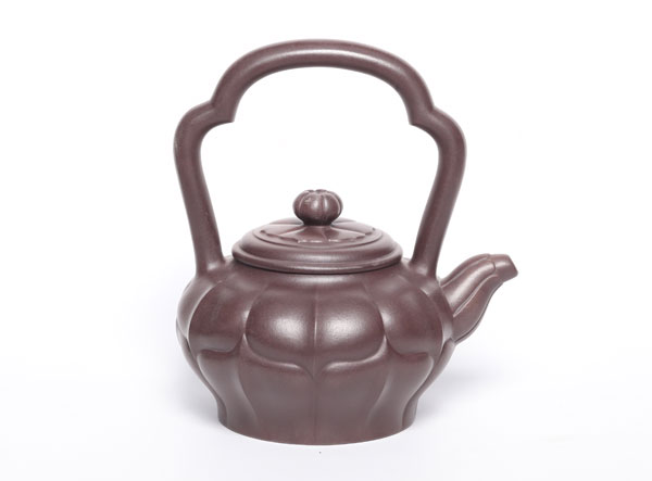 合菱提梁壶整体造型丰满圆润,气度非凡,壶身巧妙地由上下吻合、倒置交融的菱型线组成,流畅舒展、骨肉匀亭,由于造型完美、工艺精湛而成为紫砂艺术史上的经典之作,深受业内人士的推崇和收藏界的喜爱。