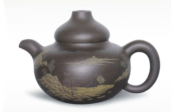 福凌壶形稳重大方,做工精细,在传统器形上突破创新,壶身泥绘运用中国书写意手法,色彩对比鲜明,山水图案优雅细腻大气磅礴,寄意深远。